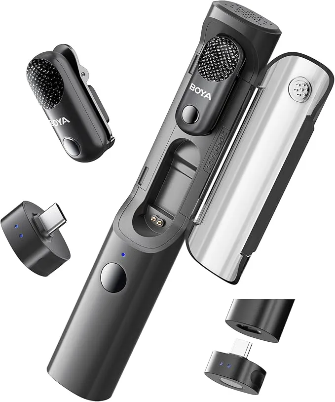Elevate your audio experience with the BOYA Magic Transformable AI-Powered Mini Wireless Microphone 05, designed for creators who demand clarity, versatility, and performance. This compact powerhouse delivers studio-grade sound through its true AI noise cancellation technology, reducing background noise by up to -40 dB for crisp, clean recordings every time.